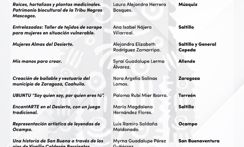 Cultura Coahuila da a conocer a los ganadores del PACMyC