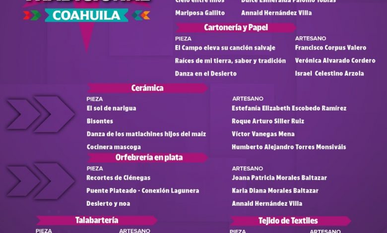 Cultura Coahuila da a conocer preseleccionados del Premio Estatal de Artesanía y Cocina Tradicional Coahuila