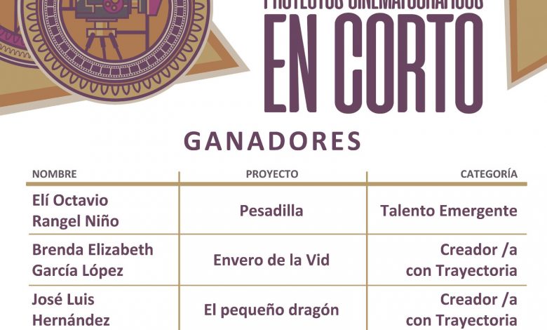 La Secretaría de Cultura de Coahuila dio a conocer a los ganadores de la convocatoria Proyectos Cinematográficos en Corto en su emisión 2023, que otorgará la suma de 320 mil pesos en premios, divididos en 2 premios en la Categoría de Creador/a con Trayectoria, por la cantidad de 120 mil pesos, y un premio en la Categoría de Talento Emergente, por la cantidad de 80 mil pesos, que les permitirán financiar la realización de sus cortometrajes.