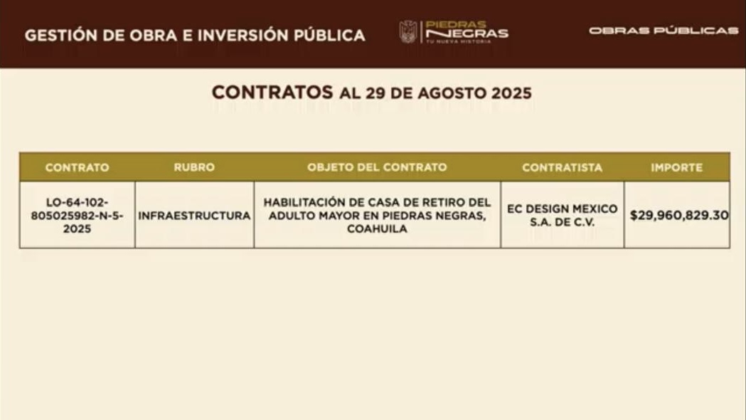 Por: Kevin Liñan – La administración municipal de Piedras Negras se encuentra bajo severo cuestionamiento tras revelarse que una empresa constructora vinculada a la familia política del alcalde Jacobo Rodríguez ha sido beneficiada con contratos que ascienden a casi 35 millones de pesos.