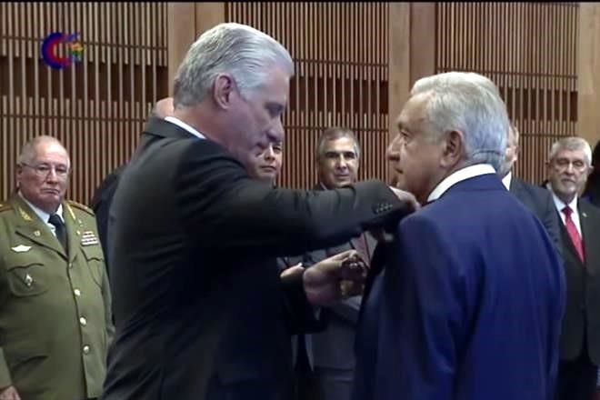 La condecoración fue entregada al Mandatario mexicano por su homólogo de Cuba, Miguel Díaz-Canel, en una ceremonia realizada en el Palacio de la Revolución.