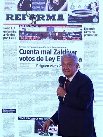 Después el Jefe del Ejecutivo pidió poner en la pantalla de la conferencia la portada de REFORMA, que hoy publica que la constitucionalidad de la Ley de la Industria Eléctrica discutida hace dos semanas en la Corte está en duda porque el Ministro Arturo Zaldívar impuso un resultado que contrasta con la posición mayoritaria del pleno.