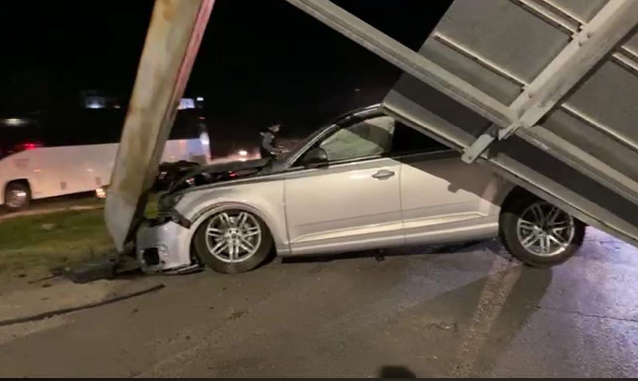 Durante la noche del pasado viernes una camioneta de lujo derribó un señalamiento vial sobre el Libramiento Venustiano Carranza en su cruce con la calle Ocampo debido al exceso de velocidad con el que se desplazaba.
