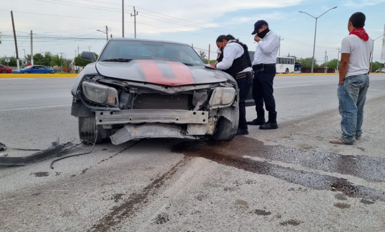 Debido al fuerte choque, el conductor de la unidad de la marca Chevrolet Camaro en color negro fue proyectado contra el camellón central, donde termino con cuantiosos daños.