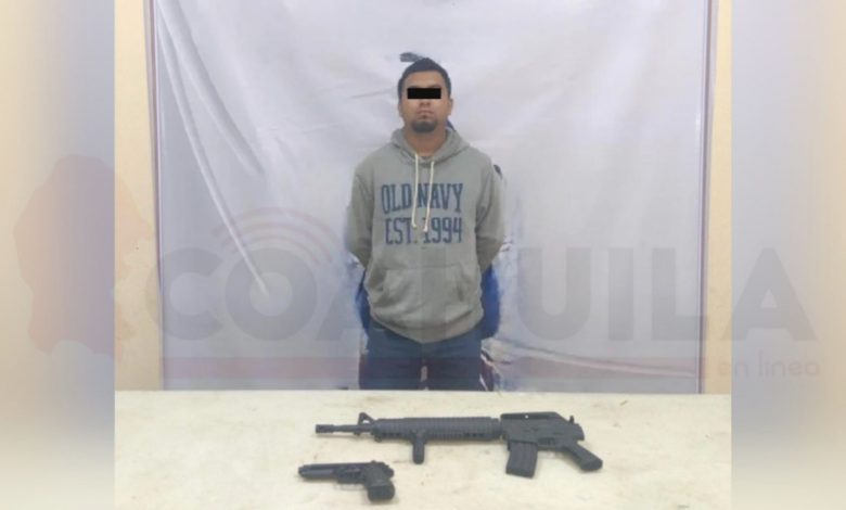 Un hombre fue detenido en el municipio de Piedras Negras, por portar dos réplicas de arma de fuego, luego de ser reportado por un vecino del sector Villas del Carmen.