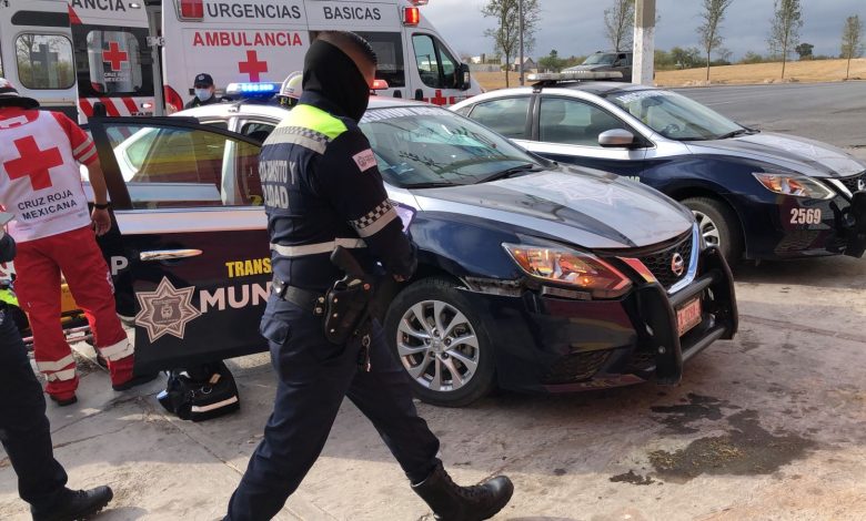 Los hechos se registraron en la colonia Nueva Vista Hermosa, en el cruce de la Avenida Industrial y la calle San Cornelio donde las patrullas 2569 y 2566, protagonizaron el accidente luego de que una de ellas presentaba fallas.