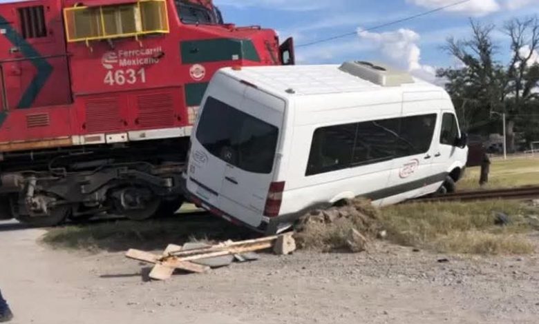 Nava, Coahuila.– Un fuerte accidente ferroviario se registró la tarde de este lunes en el cruce de las vías del tren y la calle Aldama, cuando una locomotora de la empresa Ferromex impactó una unidad tipo van dedicada al transporte de pasajeros.