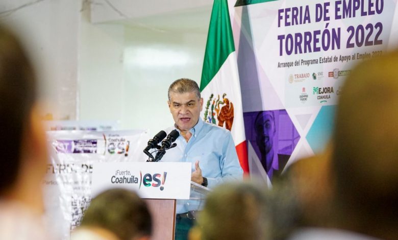 El gobernador Miguel Ángel Riquelme Solís inauguró la Segunda Feria del Empleo Torreón 2022, efectuada en el Gimnasio de la Unidad Deportiva Torreón (UDT), en donde se ofertan mil 100 vacantes de 30 empresas participantes.
