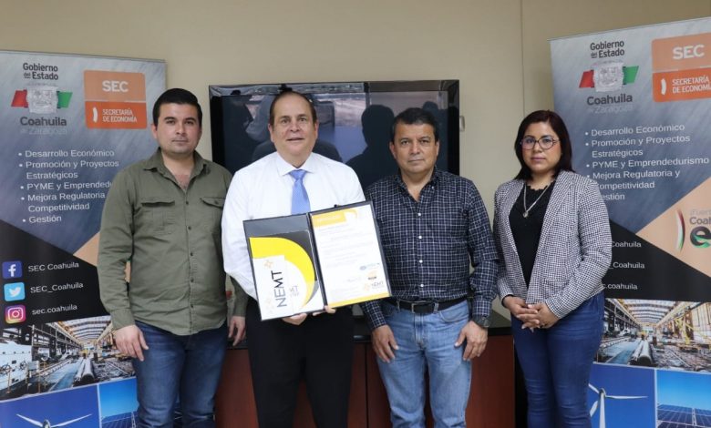 Es por ello que el día de hoy el Gobierno de Coahuila, a través de su SEC y la casa certificadora Nemt Register, entregaron dicho certificado a la empresa Ténder Eléctrica, que se dedica al estampado de chapa de acero, aplicación de fosfato y pintura, horneado de piezas y procesos de soldadura, para la industria en general.