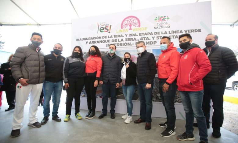 Uno de ellos, el Multideportivo El Sarape, ya está en funcionamiento al 100 por ciento, mientras que la “Línea Verde”, ubicada entre las colonias Guerrero e Hidalgo, donde habitan más de 100 mil saltillenses, registra avances importantes.