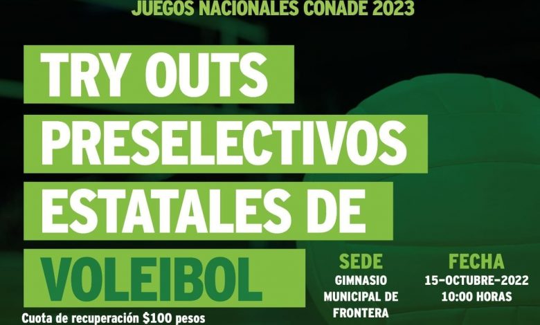 Estos try outs se llevarán a cabo el 15 de octubre en el Gimnasio Municipal de Frontera, mismos que iniciarán a las 10:00 horas.