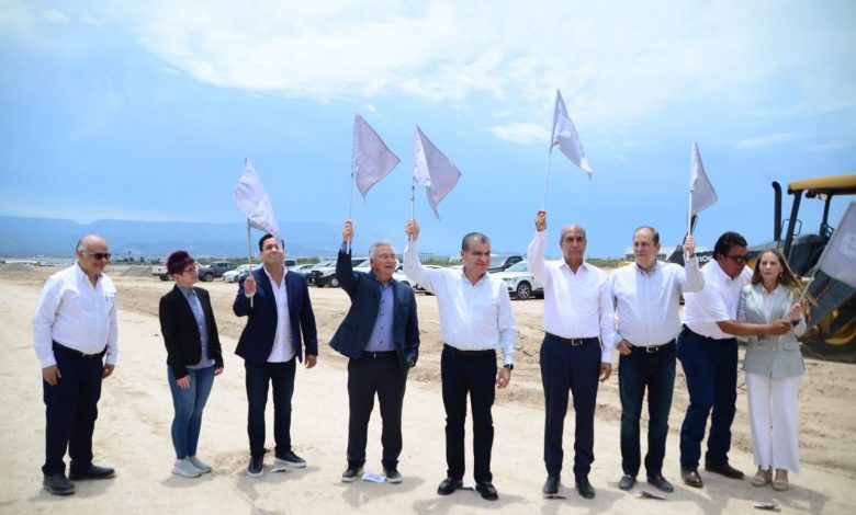 Al norte de Monclova, el gobernador Miguel Riquelme acompañó a un grupo de empresarios de la familia Gil Benavides, al colocar la primera piedra de la empresa Liddell,