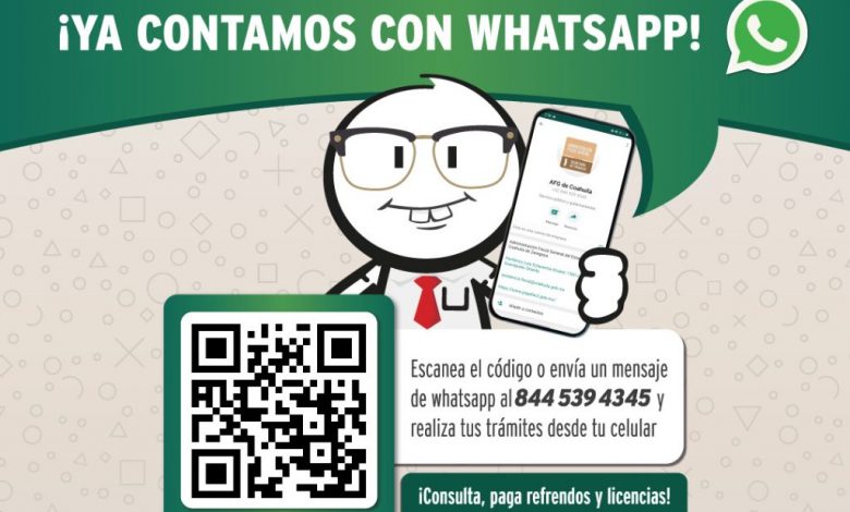 El Administrador Fiscal de Coahuila concluyó: “Invitamos a los contribuyentes que necesiten consultar su situación de control vehicular, agendar una cita o recibir asistencia fiscal, con tan sólo enviar un mensaje de WhatsApp desde la comodidad de su celular, lo pueden hacer sin necesidad de asistir personalmente. Ahorra tiempo y aprovecha esta herramienta digital que la AFG tiene para ti”.