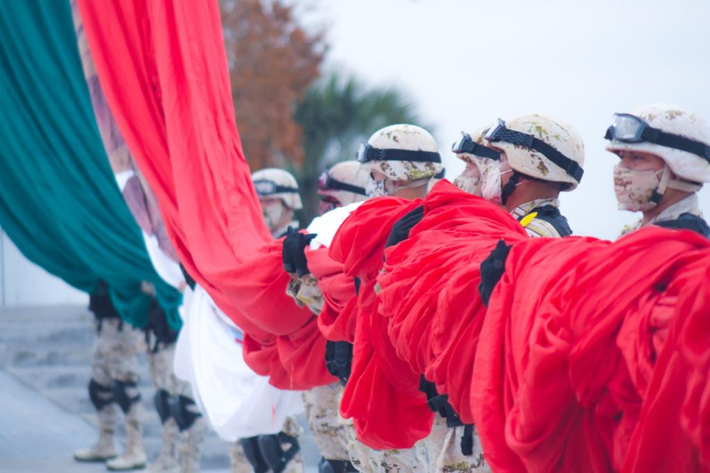 Recalcó que, la Bandera ha sido resguardada por los ejércitos de México y hoy, por el Ejército Mexicano y las Fuerzas Armadas, con la fuerza del patriotismo de sus más leales hijos.