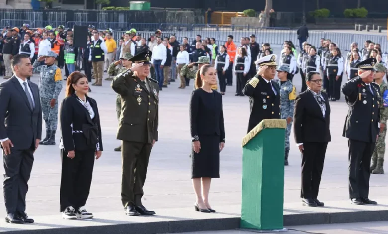 La presidenta Claudia Sheinbaum encabezó este viernes el izamiento de la Bandera Nacional a media asta en la plancha del Zócalo de la Ciudad de México, en memoria de las víctimas de los sismos ocurridos en 1985 y 2017.