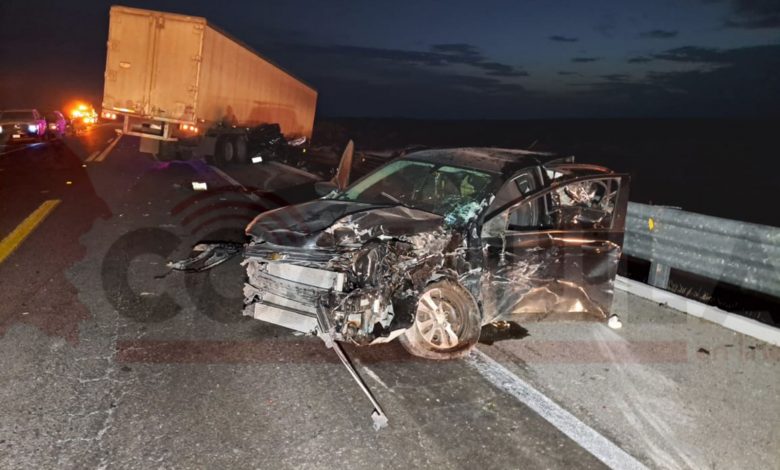 Autoridades dieron a conocer que las unidades involucradas fueron encontradas a un costado del tramo carretero. Fuentes indicaron que el percance se derivó a una posible falla en unos de los vehículos, cuando el tráiler impactó por la parte trasera y embistió un vehículo particular de la marca Chevrolet.