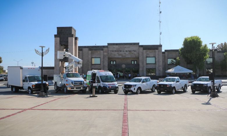 Acompañada por los regidores del Cabildo y los directores de su Administración, Treviño Galindo formalizó la entrega de un camión de carga, una grúa con canastilla para alumbrado público, una nueva ambulancia y tres pick ups, que fortalecerán la operatividad de las dependencias a las que se integrarán.