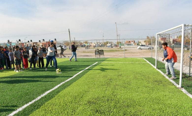 Con una inversión de 549 mil pesos, la alcaldesa de Nava María del Pilar Valenzuela Gallardo, realizó la entrega de la cancha de futbol rápido con pasto sintético, ubicada en la colonia Los Manantiales, beneficiando a niños y jóvenes de este sector, quienes ya cuentan con un espacio digno para la práctica de este deporte.