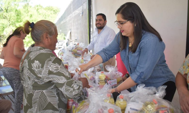 “Me siento muy contenta de poder estar hoy aquí en la delegación entregando las despensas a 64 familias de estos sectores, ayer pusimos en marcha este programa en cabecera municipal, y como me comprometí en campaña, mi gobierno es para todos, sin distinciones, estoy segura de que esta despensa les será de mucha utilidad, les permitirá generar un ahorro o bien destinar su dinero para adquirir otros productos o medicamentos que les hagan falta”, declaró la alcaldesa.