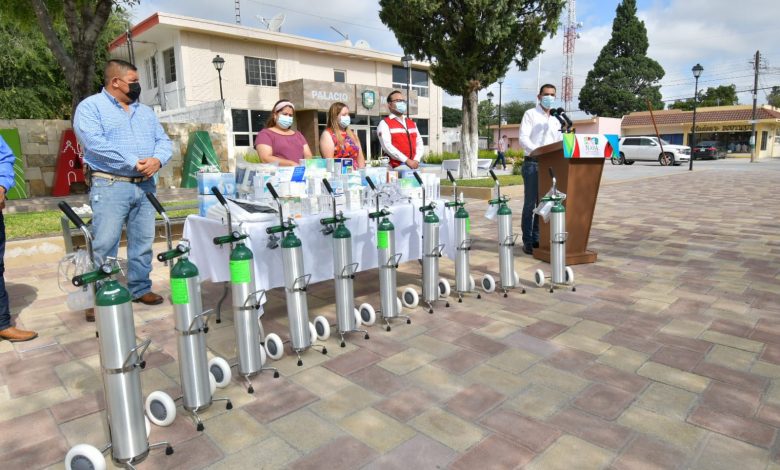 Con un inversión total de 144 mil pesos el alcalde de Nava Sergio Zenón Velázquez Vázquez realizó la entrega de tanques de oxígeno, camillas de hospital, equipo y medicamento al Centro de Salud y departamento de Protección Civil y Bomberos de esta localidad, cumpliendo así su compromiso con este tema, resaltando la importancia de contar con los insumos necesarios para hacer frente a la contingencia sanitaria por la que se atraviesa.