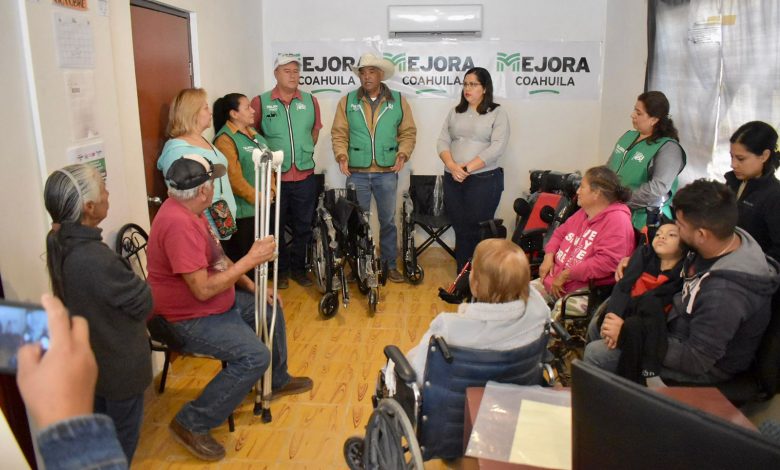 La alcaldesa de Nava, acompañada de Ernesto Bermea Dueñez, coordinador de Programas Sociales y Lucio Cavazos Espronceda, coordinador de la estrategia Mejora en los cinco manantiales, realizaron la entrega de seis sillas de ruedas a través del programa Mejora Coahuila que implementa el gobierno del Estado a través de la Secretaría de Inclusión y Desarrollo Social a cargo de Manolo Jiménez Salinas.