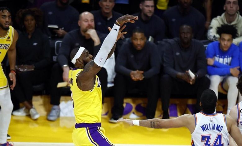 El comisionado de la NBA, Adam Silver, tomó el micrófono para felicitar a LeBron. Estaba también en el centro de la cancha Kareem, quien le dio un balón a LeBron mientras la gente vitoreaba el nombre del «Rey».