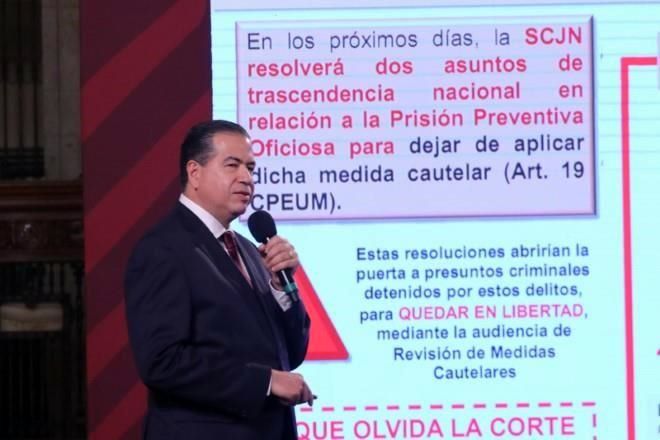 El subsecretario de Seguridad Ricardo Mejía indicó que si la Suprema Corte de Justicia decide eliminar la prisión preventiva oficiosa, se abrirá la puerta a presuntos delincuentes y podrían ser excarcelados.