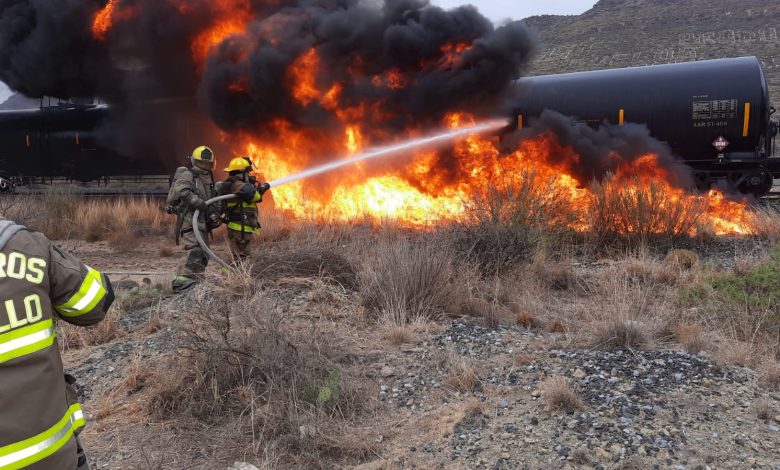 Incendio y explosión en uno de los vagones de un tren causo alarma al sur de Saltillo, donde elementos del cuerpo de bomberos acudieron al lugar para controlar la situación.