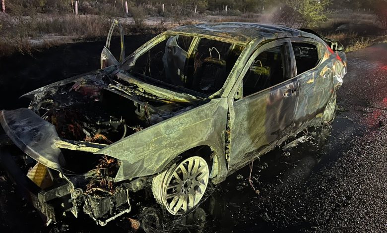 Redacción | Acuña, Coah.– Un vehículo deportivo quedó reducido a cenizas la tarde de este domingo, luego de incendiarse sobre la carretera Acuña–Zaragoza, a la altura del ejido Palestina, presuntamente debido a una falla mecánica.