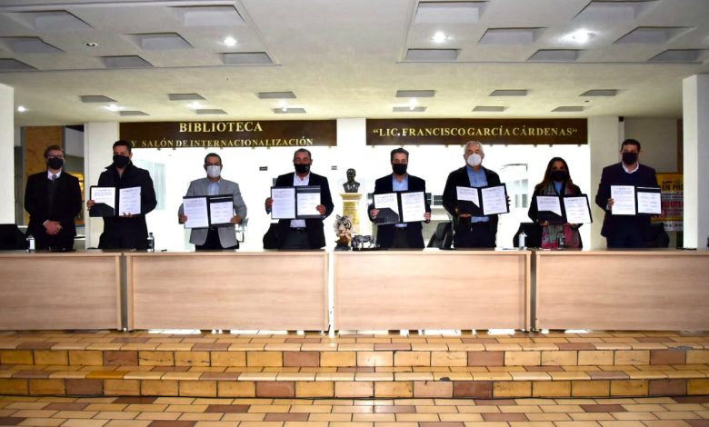 La Secretaría firmó el convenio junto a los titulares dela Comisión de Vivienda y de la CERTTURC, además del Dr. Raúl Alfonso Villarreal flores, Coordinador de Posgrado en Investigación; Ana Marcela Sánchez Rodríguez, Secretaria Técnica; Jesús Alberto Sánchez Rodríguez, presidente de la Sociedad de Alumnos, y Jesús Octavio Pimentel Martínez, Coordinador General de Vinculación e Innovación Productiva de la universidad.