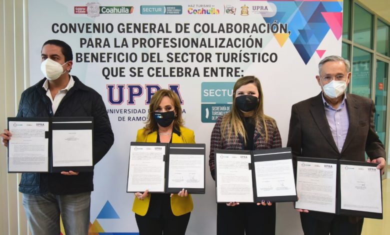 La Secretaría de Turismo y Desarrollo de Pueblos Mágicos del Estado estableció un convenio de colaboración con la Universidad Politécnica de Ramos Arizpe (UPRA) para que integrantes de la cadena de valor tengan la oportunidad de acceder a becas académicas para educación superior, recibir clases de inglés y participar en diversos diplomados.