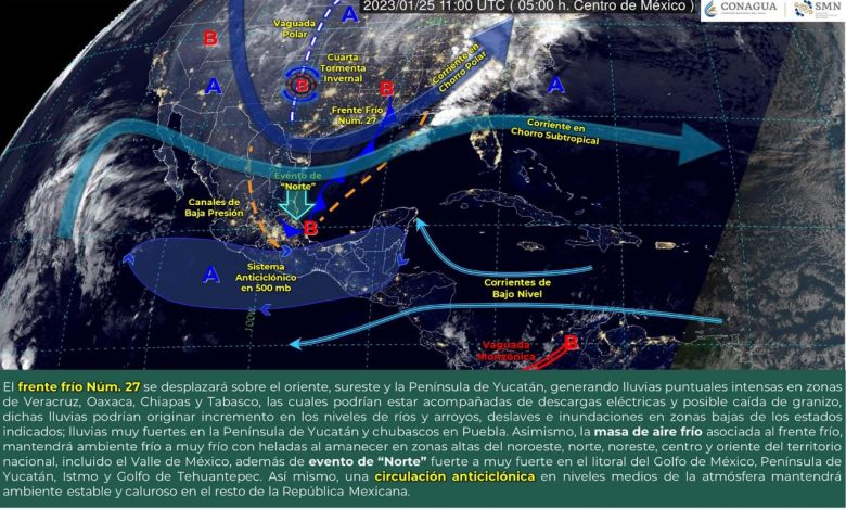 De acuerdo al Servicio Meteorológico Nacional, se espera un descenso de temperatura en la entidad, con temperaturas mínimas de -5°C a -10°C en las zonas altas del estado, lo que generará posibles heladas.