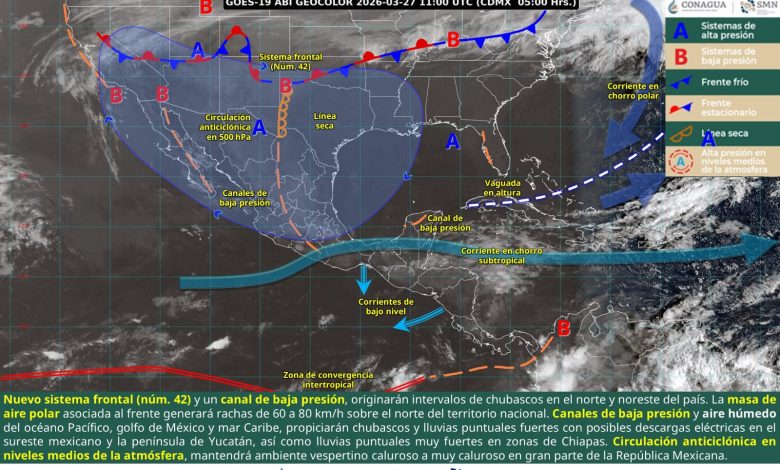 Redacción | Saltillo, Coah.- El ingreso del frente frío número 42 al norte del país provocará condiciones de inestabilidad en Coahuila, informó la Subsecretaría de Protección Civil del Estado a través de la Secretaría de Gobierno, al detallar que este sistema interactúa con una masa de aire polar que impactará diversas regiones de la entidad.