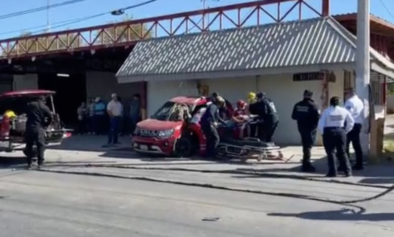 El percance ocurrió sobre la avenida López Mateos, al llegar al cruce con la calle Torreón, cuando una camioneta Dodge Ram negra impactó un vehículo compacto Suzuki rojo que tenía el paso libre. La conductora, identificada como Laura, quedó atrapada dentro de su automóvil debido a la fuerza del choque.