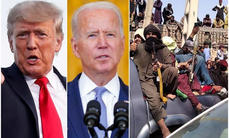 Aunque Trump supervisó las negociaciones con los talibanes para retirar al ejército estadunidense de Afganistán, culpa a su sucesor de la debacle del ejército afgano.