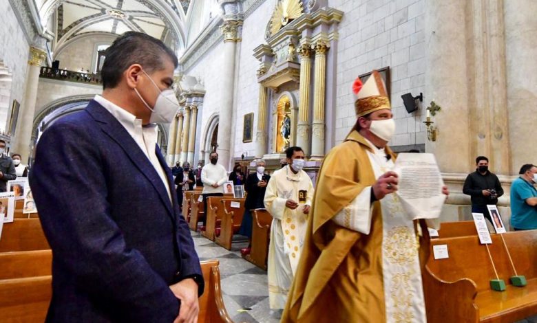El Mandatario estatal asistió a la celebración eucarística de la toma de posesión de monseñor Hilario González García como el séptimo Obispo de Saltillo, efectuada en la Catedral de Santiago.