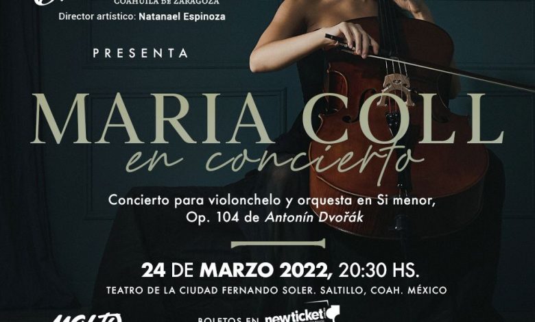 María Coll, quien llega directo de su natal Barcelona, dotada de una espectacular y virtuosa ejecución, bajo la dirección del maestro Natanael Espinoza, Director Residente de la OFDC, ofrecerán un espectacular concierto, cuyo programa estará integrado por la Obertura de la ópera Rienzi, de Richard Wagner, y el Concierto para violonchelo y orquesta en Si menor Op. 104, de Antonín Dvorák, con la solista María Coll, violonchelo, y un espectacular cierre con las Danzas del ballet Estancia Op. 8, Alberto Ginastera, un sensacional concierto que, además, apoya la causa de quienes más lo necesitan, aportando el 50 por ciento del boletaje a Cáritas de Saltillo AC.