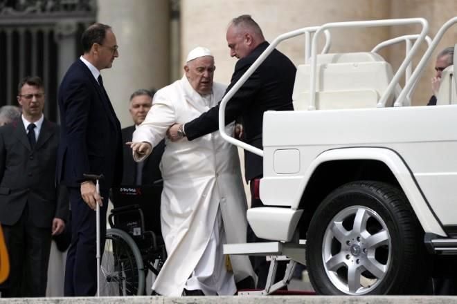 Francisco parecía encontrarse relativamente bien de salud durante su habitual audiencia general del miércoles, aunque hacía muecas al entrar y salir del «papamóvil».