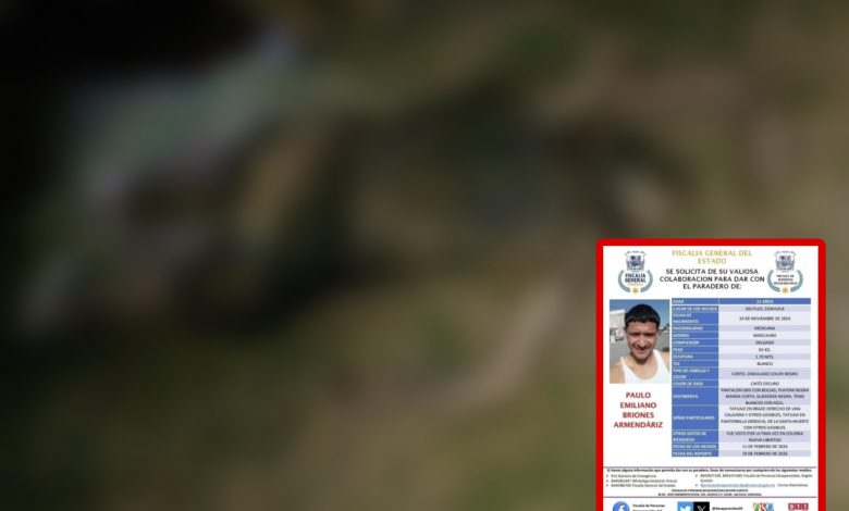 De acuerdo con la información recabada, el fallecido respondía al nombre de Paulo Emiliano Briones Armendáriz, de 21 años de edad, residente de la capital del estado. El joven había sido reportado como desaparecido el pasado 19 de febrero, aunque familiares señalaron que la última vez que fue visto fue el 11 de febrero, cuando salió de su domicilio en Saltillo.