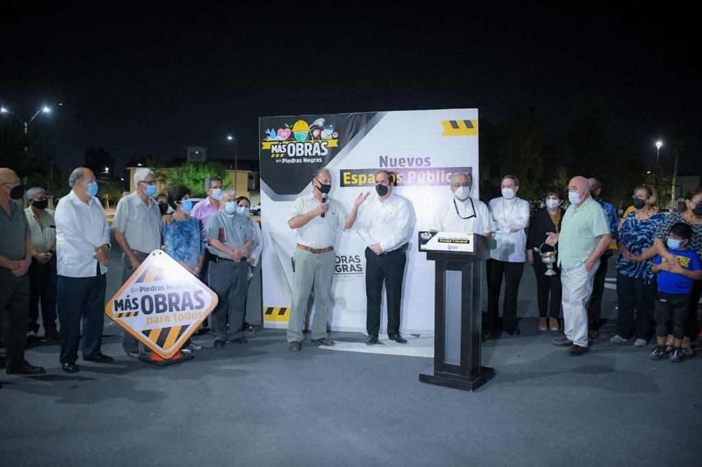 El alcalde Claudio Bres Garza acompañado por el obispo de la diócesis de Piedras Negras, Alonso Gerardo Garza Treviño, el presbítero Juan Armando Renovato y vecinos del fraccionamiento Tecnológico pusieron en marcha el nuevo parque Catedral ubicado en la calle Paseo de Las Artes de dicho sector.