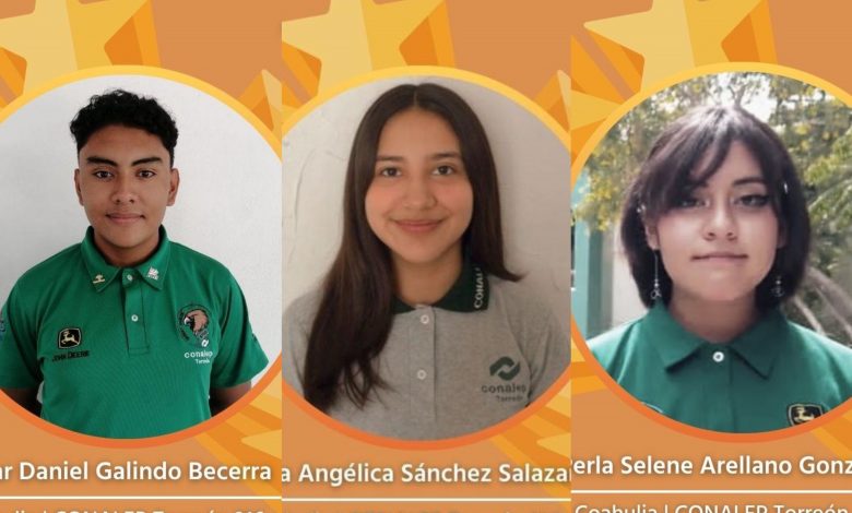 Ellos son Perla Selene Arellano González, Luna Angélica Sánchez Salazar y Óscar Daniel Galindo Becerra, estudiantes del CONALEP plantel Torreón, y como docente finalista Ricardo Eduardo Carrillo Gaona, del CONALEP Saltillo, informó Alfio Vega de la Peña, Director General de CONALEP Coahuila.