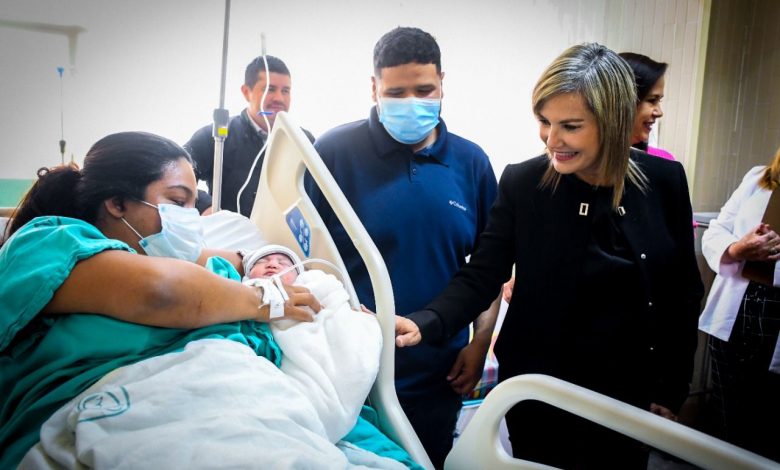La Alcaldesa Norma Treviño Galindo visitó hoy el hospital del seguro social no. 11, donde nació a las 8:42 de la mañana el primer bebé varón por parto natural, el cual pesó 2 kilos 985 gramos y midió 50 centímetros.