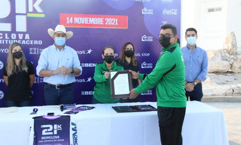 Con la presencia del alcalde Alfredo Paredes López, así como de Alina Garza Herrera, Directora General del INEDEC, este día se presentó la 21K Monclova, medio maratón que se correrá el próximo 14 de noviembre en esta ciudad.