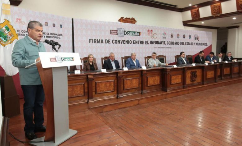 El Director General del Infonavit, el Gobernador de Coahuila y autoridades municipales firmaron un convenio para que el Infonavit pueda pagar directamente a los ayuntamientos adeudos de agua y predial de viviendas recuperadas.