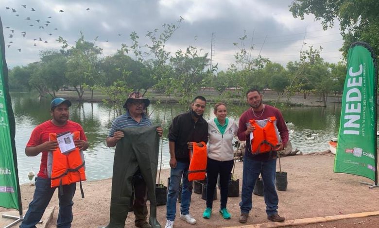 En este marco, la Garza Herrera también entregó equipo de chalecos salvavidas y vadeadores impermeables, para favorecer la limpieza de las orillas del lago.