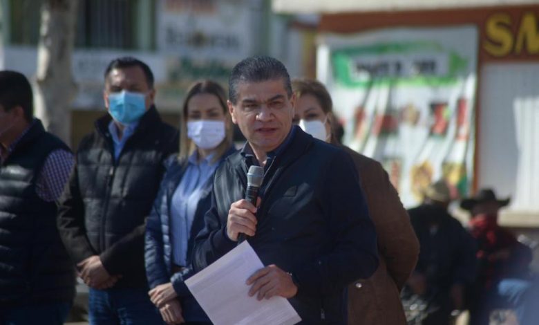 El gobernador Miguel Ángel Riquelme Solís acudió al Ejido La Cuchilla, de Múzquiz, donde dio el banderazo de inicio de un tanque superficial de concreto, de 4 mil metros cúbicos de capacidad, con líneas de alimentación para esta localidad y Palaú.