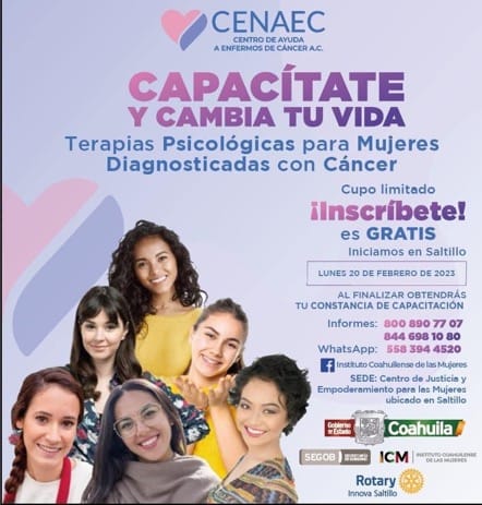 En el marco de esta colaboración, en los municipios de Saltillo y Torreón se brindan terapias psicológicas a mujeres con cáncer con el propósito de trabajar con ellas en su autoestima, desarrollar sus habilidades personales y sociales, así como su crecimiento personal para continuar con un plan de vida.
