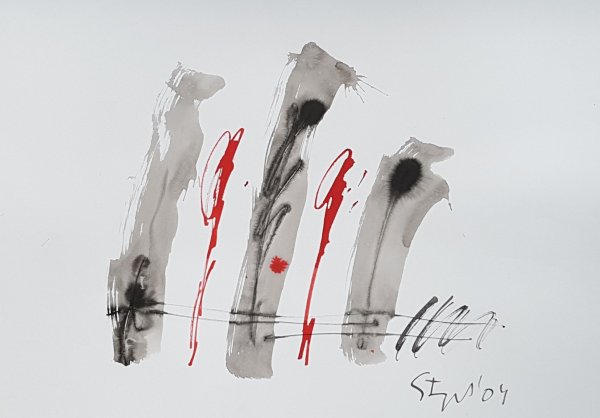 En su obra prevalece el expresionismo abstracto, en que se aprecia el sufrimiento humano, producto de sus vivencias.