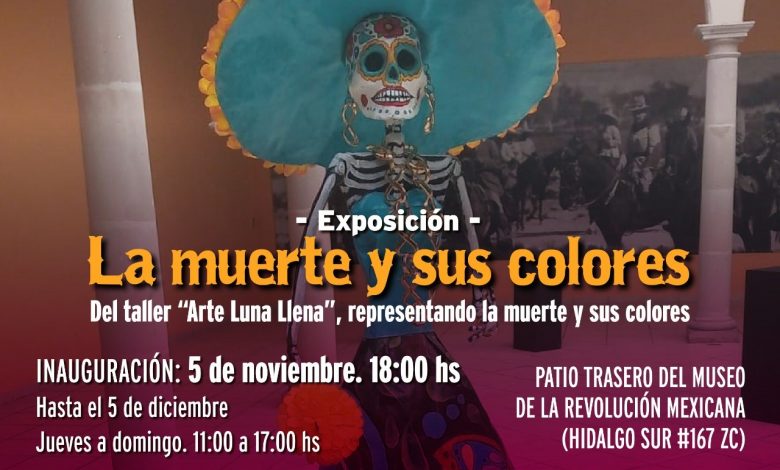 El Gobierno del Estado, a través de la Secretaría de Cultura (SC), continúa con la conmemoración del 2 de noviembre Día de Muertos, con la exposición de obras de cartonería y pictóricas al óleo “La Muerte y sus Colores”, que inaugurará este viernes a las 18:00 horas en el Museo de la Revolución Mexicana, ubicado en la calle Hidalgo número 167, en la Zona Centro de Saltillo.