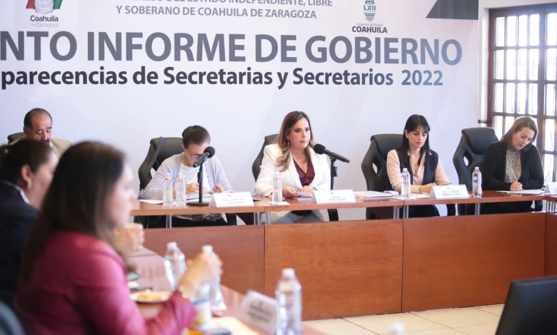 La secretaria del Trabajo informó a los diputados de Coahuila que estos resultados son gracias a las acertadas políticas que ha establecido en el Estado el gobernador Miguel Ángel Riquelme Solís, y a su gran liderazgo al convocar a trabajar, bajo un mismo rumbo, a empresarios, sindicatos, asociaciones gremiales y de la sociedad civil.